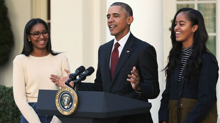 "We call ourselves 'The Long Faces,' because [Malia's] face is more shaped like mine, and 'The Round Faces' are Michelle and Sasha," he added. "The Round Faces are a fiercer tribe. We're like the vegetarians, the gatherers, and they're the hunters. We try to keep the peace with them. [...] I'm generally the brunt of jokes in my house."
