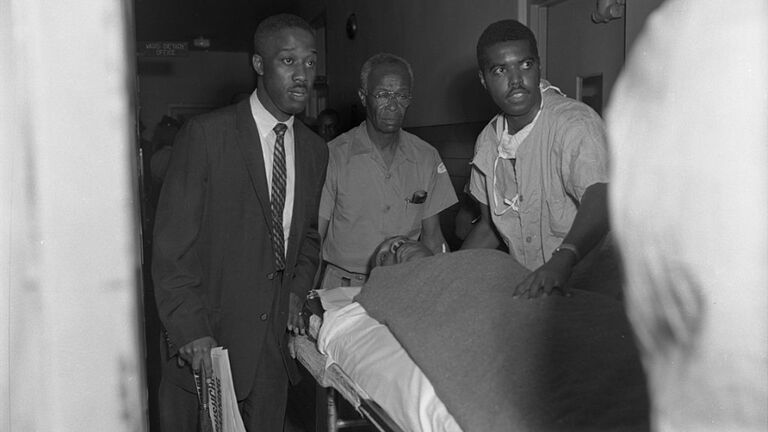 In his retelling the story to Miller, Howard said he got to a telephone and called Harlem Hospital. A doctor told them to leave the blade in and that they’d send an ambulance. Howard noticed the growing crowd and asked the doctor to send the ambulance to the back of the store.