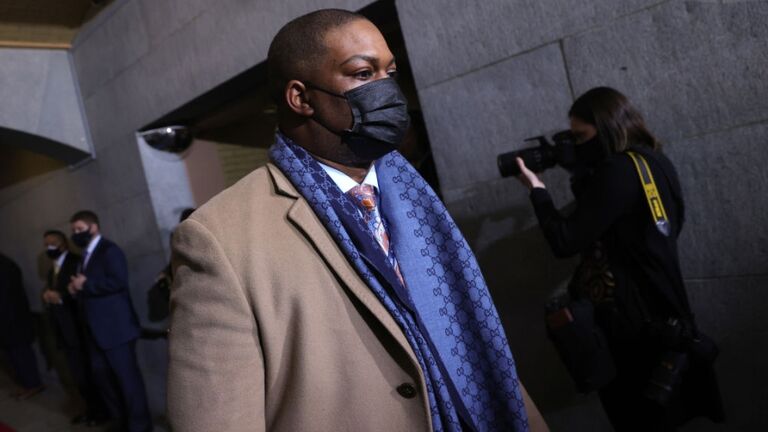To escort her and the Second Gentleman Doug Emhoff, Capitol Police Officer Eugene Goodman is on the job.