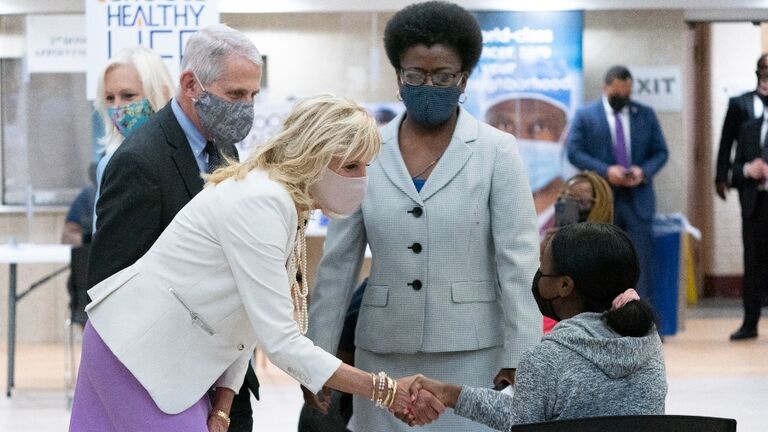 "Thank you all for coming, because this is how we get the word out" Dr. Biden said to the people at the site. "We want everyone 12 and over to come get vaccinated. We're really working hard because we have to get vaccinated to get back to life as normal."