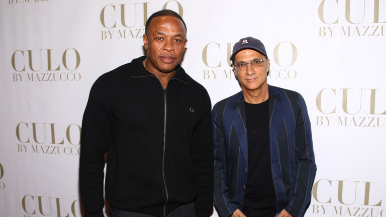 NEW YORK, NY - OCTOBER 09: Dr. Dre (L) and Interscope Geffen A&M Chairman Jimmy Iovine attend the "CULO By Mazzucco" Launch at the Tony Shafrazi Gallery on October 9, 2011 in New York City.