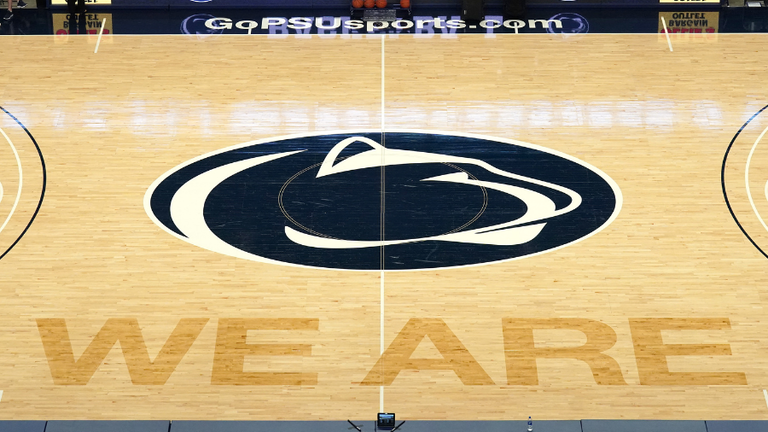 UNIVERSITY PARK, PA - FEBRUARY 18: The Penn State Nittany Lions logo on the floor before a college basketball game against the Illinois Fighting Illini at the Bryce Jordan Center on February 18, 2020 in University Park, Pennsylvania.