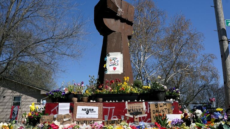 The memorial is located at the intersection where Daunte was fatally shot by former Brooklyn Center officer Kimberly Potter who was convicted and sentenced to two years in prison in his killing. The memorial includes photos, posters, candles, and other items placed on and around a platform that includes a large statue of the Black power fist. Other victims of police brutality are also honored here.