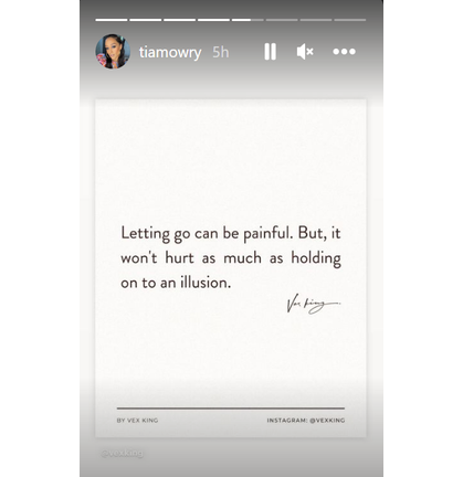 On Tuesday, Mowry shared a message on her Instagram story, seemingly alluding to the divorce. "Letting go can be painful," the message reads. "But it won't hurt as much holding on to an illusion."