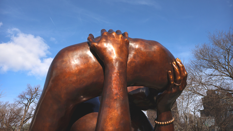 Martin Luther King III, who approved the sculpture, told CNN he was "satisfied" with how "The Embrace" came out.