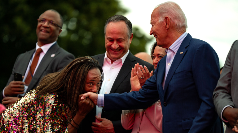 Another moment from the Juneteenth celebration that caught social media's attention was Biden appearing to freeze during a concert featuring gospel singer Kirk Franklin. In a clip circulated online, Biden stared blankly and wasn't moving for roughly 30 seconds until Philonise Floyd, the brother of George Floyd, who was murdered by police in 2020, put his arm around the president.