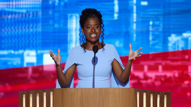 “Guess what? We’ve got 75 days and a wakeup left.” Moore said, referring to a custom where troops count down the number of days until a mission is complete. “Seventy-five days and a wakeup to elect a leader who is willing to believe in the best of us — and that leader is Kamala Harris: the next President of the United States!”