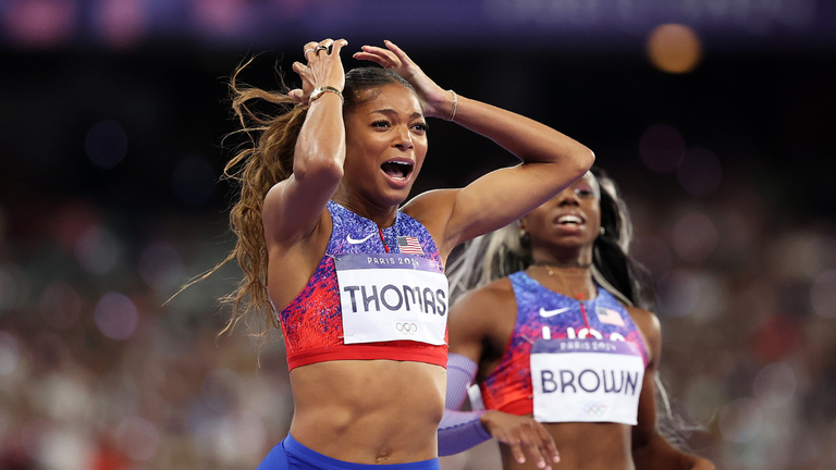 Thomas went on to win gold in the women's 200-meter final last summer at the 2024 Paris Olympics. She also earned gold medals with her teammates in the women's 4x100-meter and 4x400-meter races.
