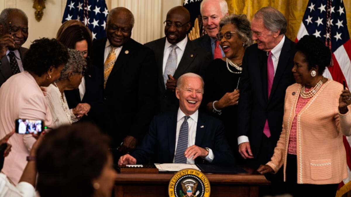 After speaking, Biden signed the Juneteenth Proclamation, making it a federal holiday and again the room applauded. It’s the first federal holiday declared in decades.
