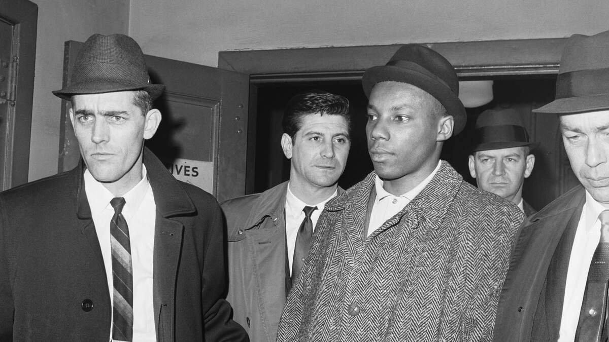 Muhammad Abdul Aziz (center) being escorted to jail on February 26, 1965. Photo: Getty Images