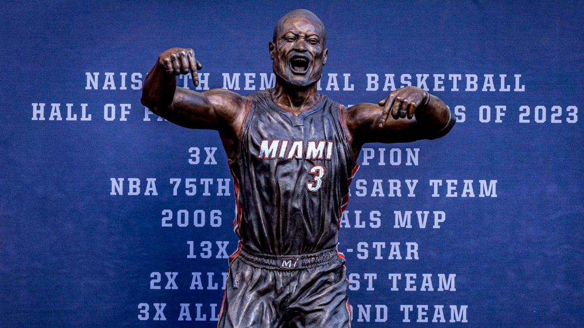 The statue intended to depict the iconic moment when Wade shouted "This is my house!" after making a game-winning shot in double overtime during a matchup against the Chicago Bulls in March 2009.